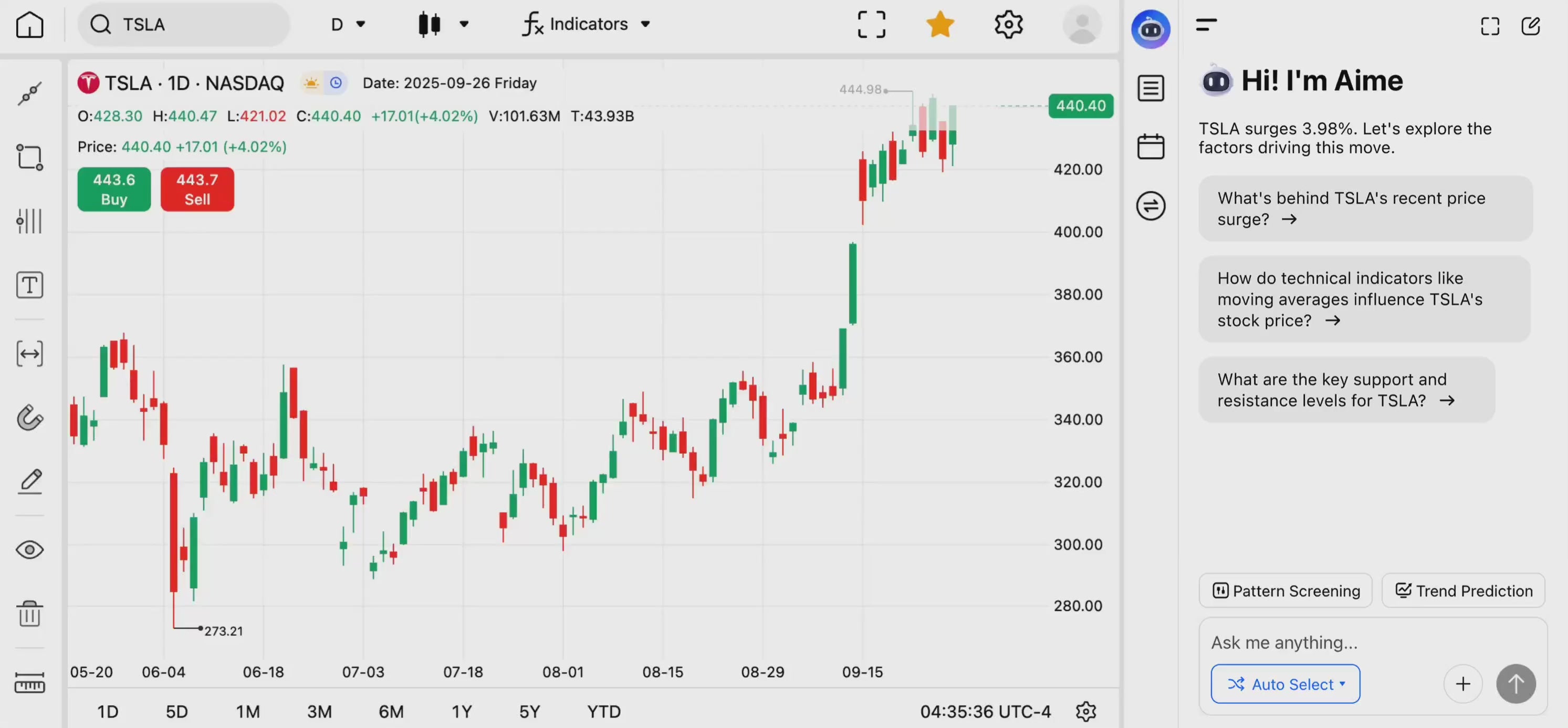 Quickly evaluate momentum, support/resistance zones, and recent catalysts with an easy-to-read AI report.